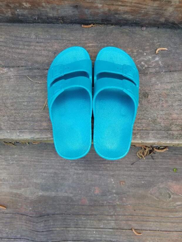 Freedom Moses slides have a cross-hatched insole that keeps your feet from sliding around when they’re wet but is nearly undetectable while you’re walking around. These sandals are also infused with air to be light as a feather, making them a no-brainer to throw in a beach bag or a suitcase. And, bonus, the eco-friendly plastic material is vegan, recyclable and washable. (And yes, you can get your little ones a pair, too, as they come in toddler and kid’s sizes).